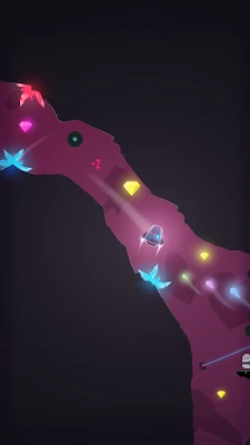 Level up your spacecraft by collecting gems on your way to depths. Equip powerful and useful items like lasers, energy shields or gem attraction gadget. Pick up safety shields along the way to help guard your spaceship against crashing into the rugged walls and destroying your craft. Safety shields are also useful protection from any underground attackers you may happen across as you navigate the numerous twists and turns.