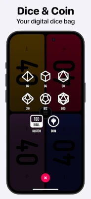 - Roll any custom dice (including D4-D20) or flip a coin