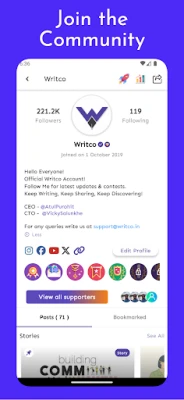 Writco is a multilingual platform that connects writers and readers globally. Discover, write, share, and self-publish stories, poems, novels, letters, and books in over 18 languages and 40+ genres. A complete writing and reading app where your words can help you monetize content and earn rewards.